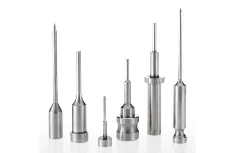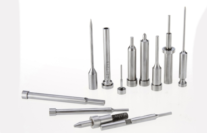 硬质合金冲头作为冲压模具工作时的部件,又叫做硬质合金冲棒,属于可替换的模具耗材类产品。冲针根据材质、形状、用途的不同可以分为SKD、SKH、ASP冲针、引导冲、子母冲针、抽牙冲针、检知梢、六角冲针、椭圆冲针、成型冲针、扇型冲头、异形冲针、高速钢冲针和高品质要求的硬质合金冲棒,广东这边也习惯叫做钨钢冲针。