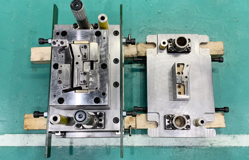 b.弯曲模具:是将平整的毛胚弯成一个角度的形状,视零件的形状、精度及生产量的多寡,乃有多种不同形式的模具,如普通弯曲冲模、凸轮弯曲冲模、卷边冲模、圆弧弯曲冲模、折弯冲缝冲模与扭曲冲模等。